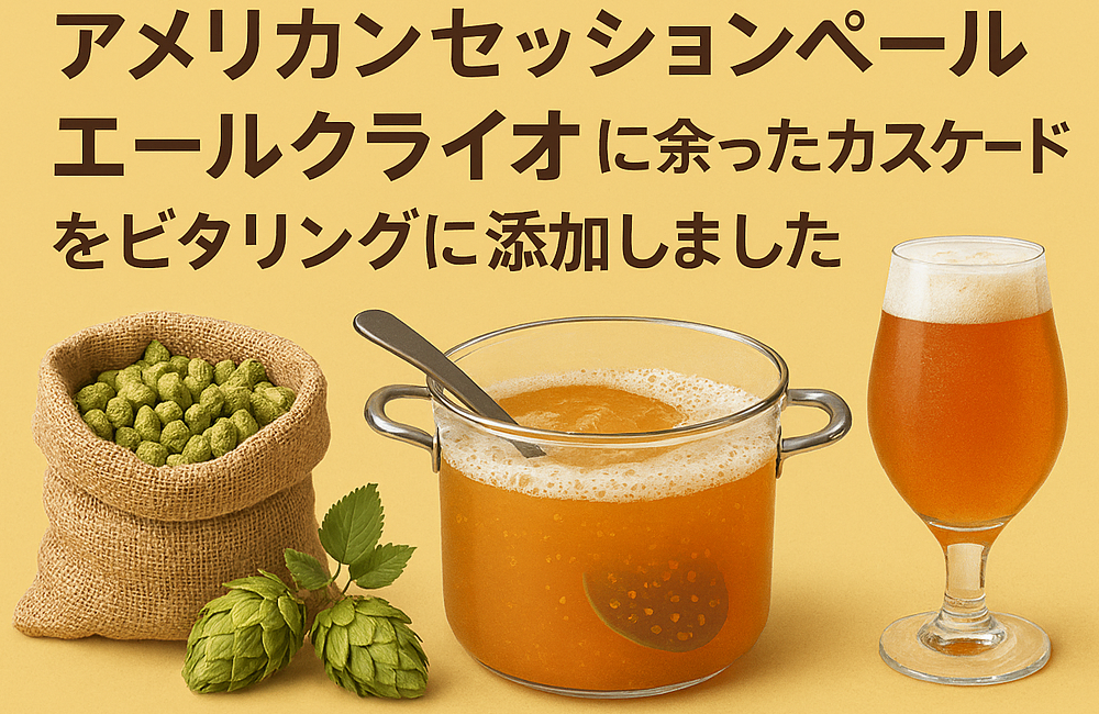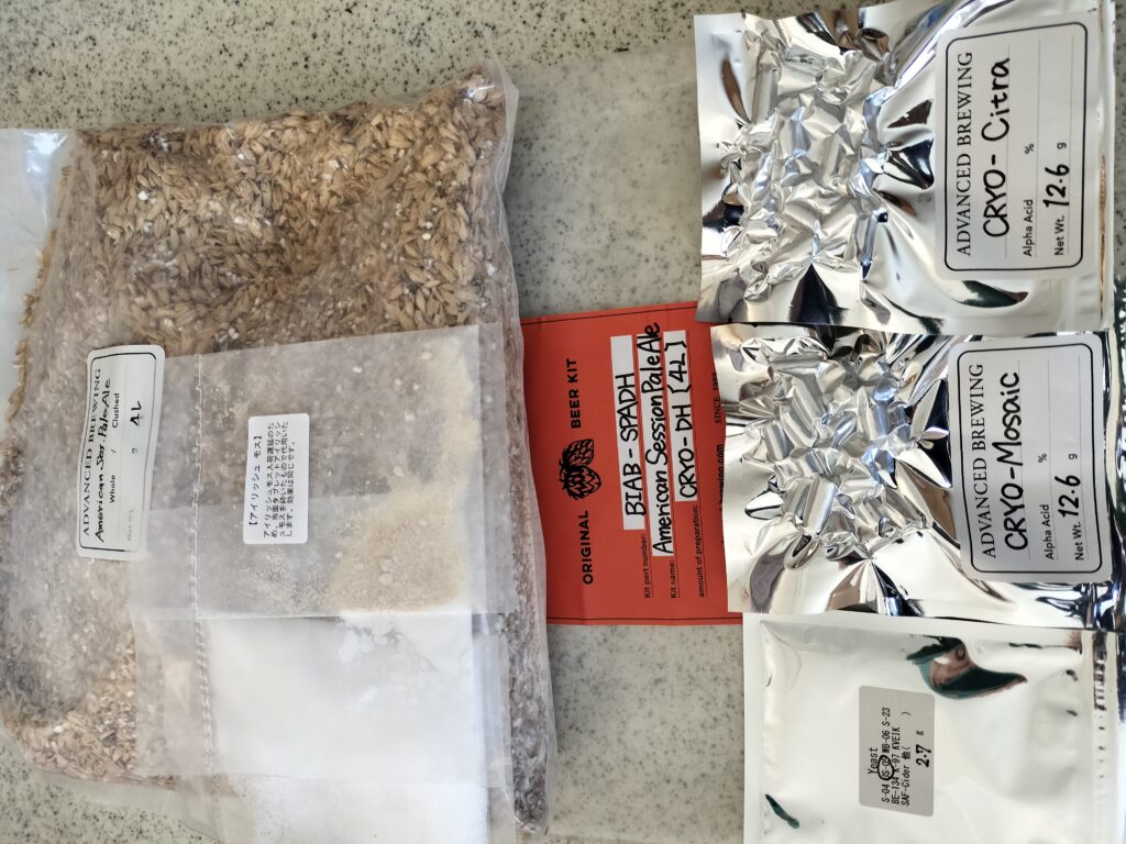 今回は自家製ホップは夏に使い切り、アドバンスドブルーイングの「BIAB-SPADH-4L-アメリカンセッションペールエールクライオ」に余ったカスケードをビタリングに添加しました。
